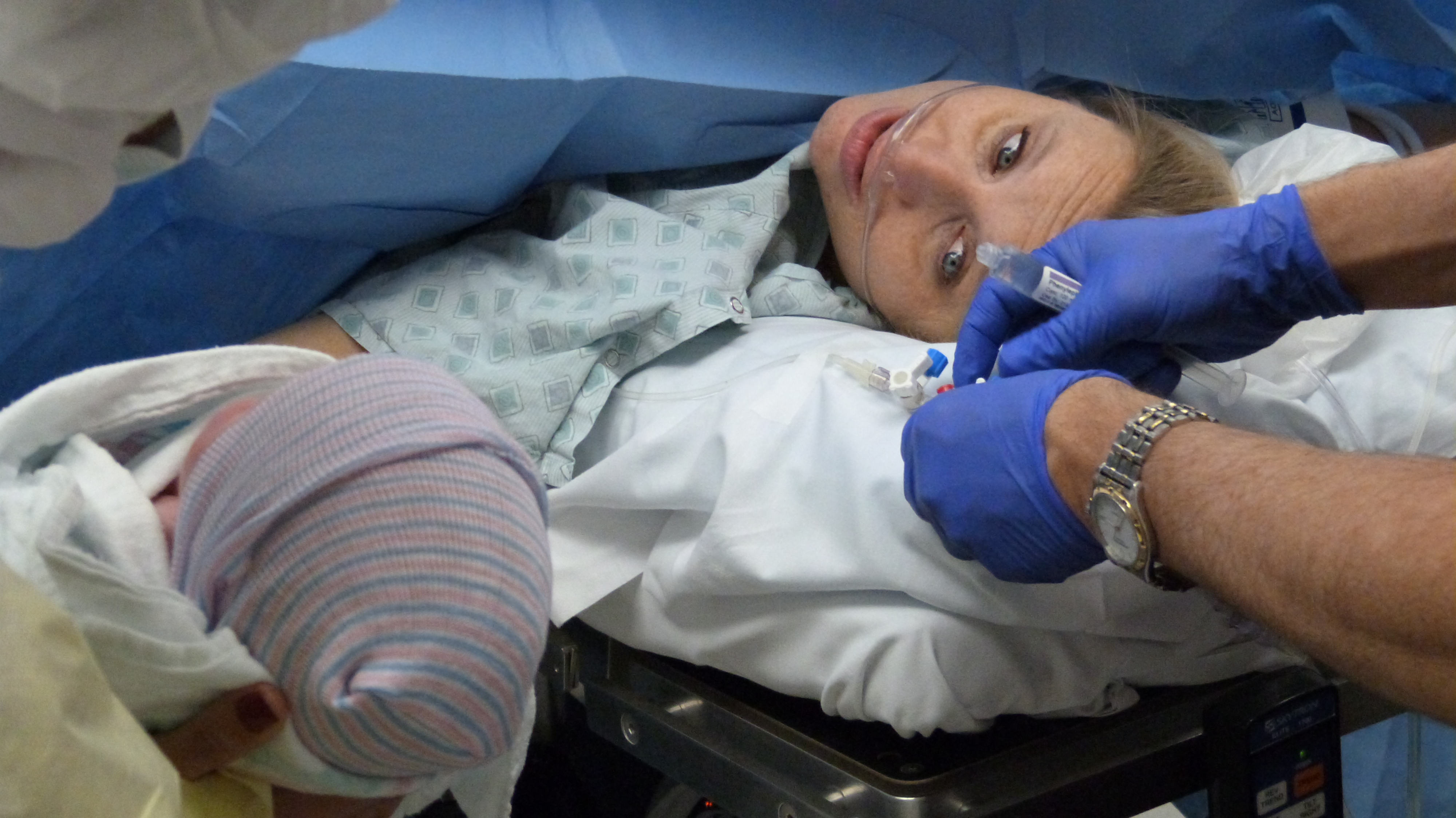 It took a while, but eventually they pulled our baby out.  I didn’t even know if it was a boy or girl, and at this point, all I noticed was that it wasn’t making any noise, and it looked kinda blue.  Time stopped while I begged this baby to cry.  “Please just cry!”  I tell ya, 5 seconds never went by so slowly.