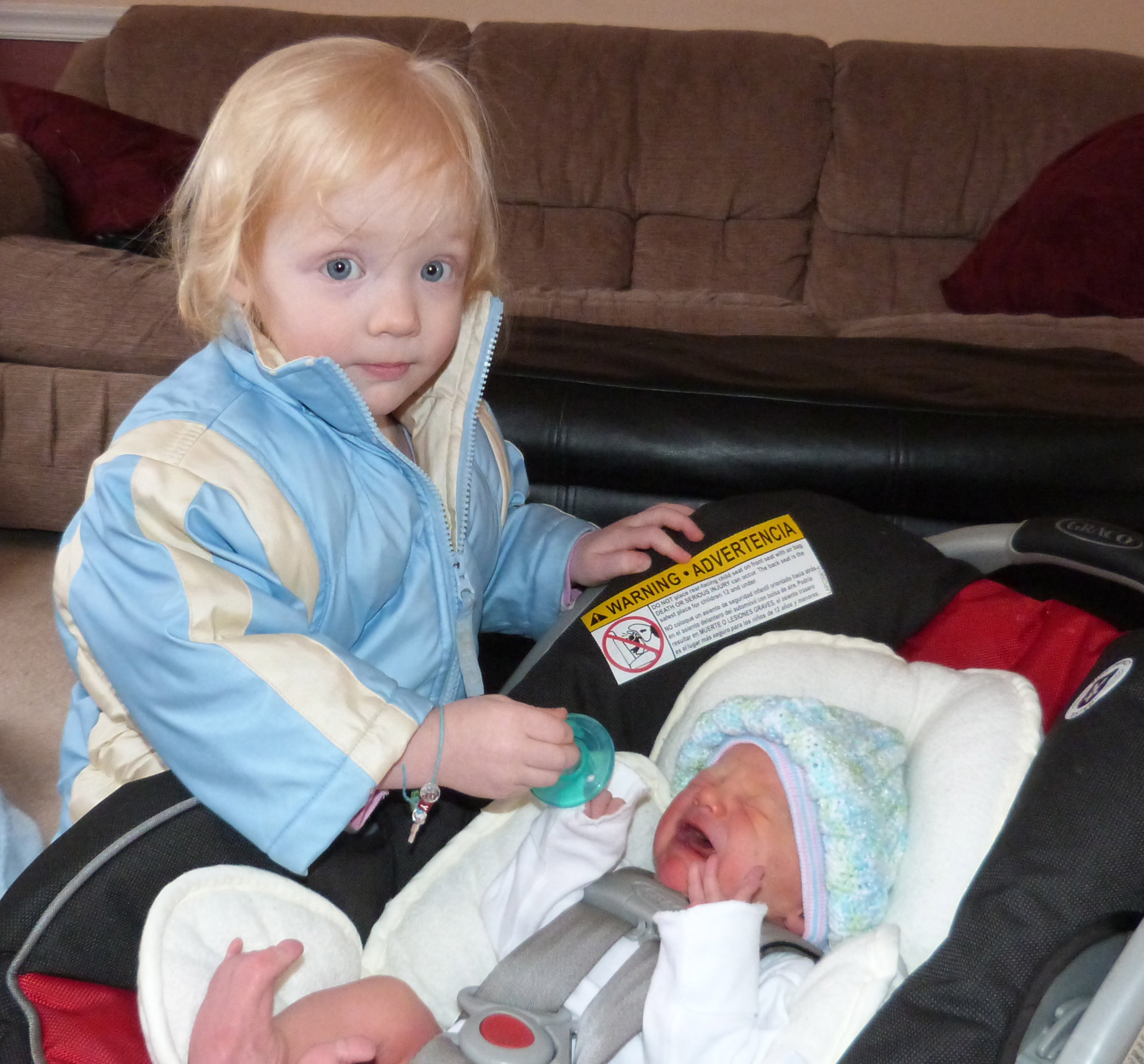 After two days in the hospital, we came home and introduced Jimmy and Riley to their new younger brother.  They were excited, and Riley wasted no time initiating her brother in the family hierarchy.