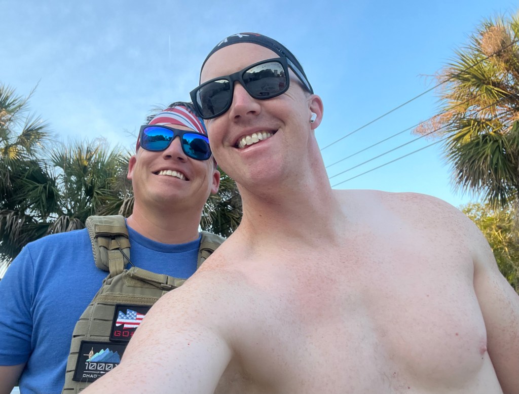 At 0700 we stood for the National Anthem. Then, in accordance with a “Shirtless Murph” pact that was made, I took my shirt off. A bit on that…